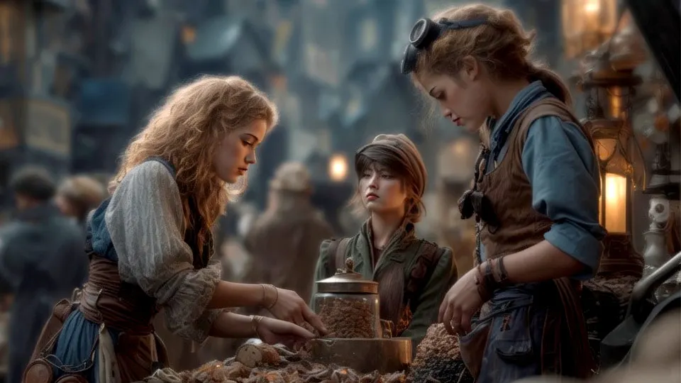 The gates of Airovale stretched open as morning spilled across the cobbled streets. A rush of scents met the tide of travellers — sweet apples stacked in wicker baskets, the sharp tang of salt fish packed in ice, and the bitter undertone of coal smoke rising from the forges.
