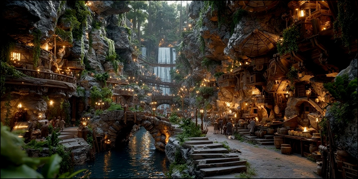Beyond the endless blue of the Southern Sea lies Canyon Myst—an uncharted island of myth and legend. Hidden terraces and fog-lit ravines shelter a settlement guarded by the fae, who stand in quiet partnership with shipwrecked humans that became the village's first "Mystics." Once an ancient utopia, the canyon's old world was sealed beneath volcanic glass and deep aquatic caverns after a cataclysmic eruption.